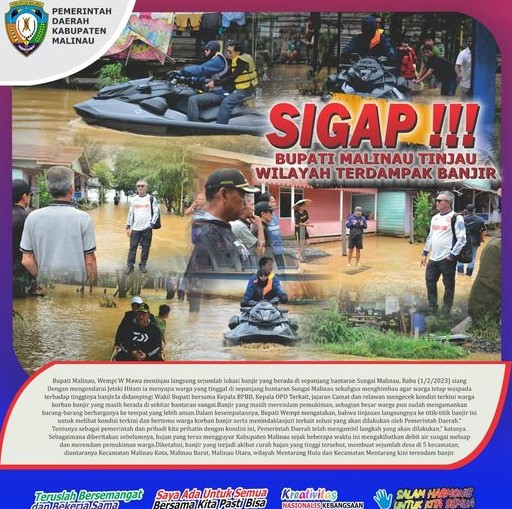 Bupati Malinau Wempi W Mawa, SE., MH meninjau lokasi banjir yang berada di sepanjang bantaran Sungai Malinau
